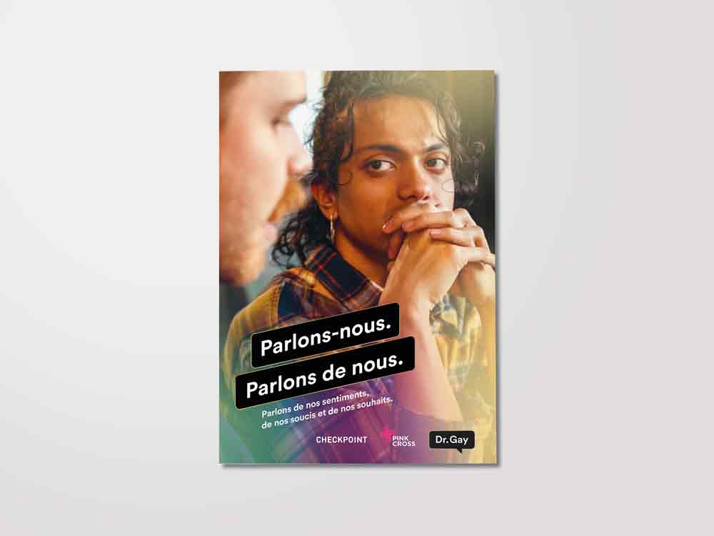 Le dépliant thématise les amitiés dans des contextes gays et queer pour renforcer la santé psychique.