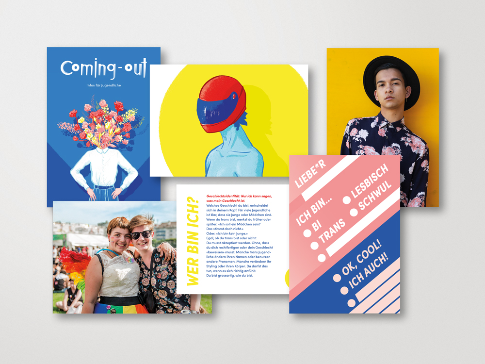 Venti cartoline contenenti tutte le informazioni importanti sull'orientamento sessuale, l'identità di genere e il coming out. Le informazioni sono accompagnate da ritratti di giovani e riferimenti a organizzazioni giovanili e calendari di eventi.
